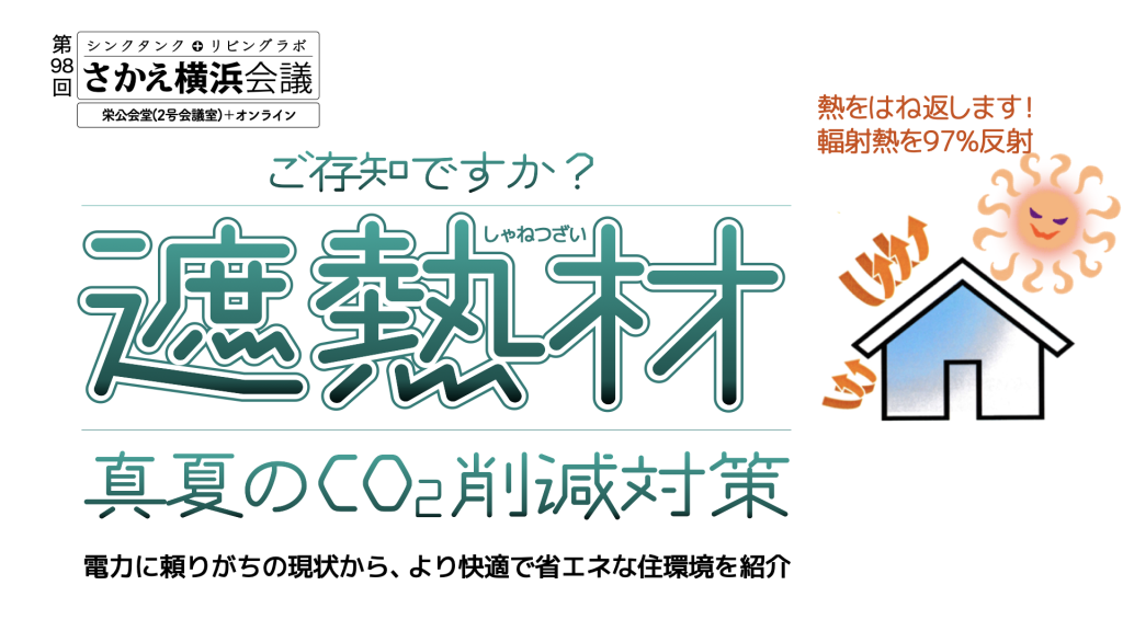 第98回 さかえ横浜会議「ご存知ですか?遮熱材」毎月11日開催のさかえ横浜会議、7月は 7月24日(木) 18:00より 栄公会堂の2号会議室 で「ご存知ですか?「遮熱材」~真夏のCO2削減対策」を開催します。会場での講演に加え、Zoomによるオンライン配信でもご参加 […]